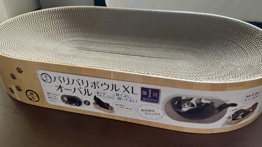 この記事では、バリバリボウルXL オーバルを使ってみた感想や、猫ちゃんが実際に爪とぎ、ベッドとして使っている様子などを紹介します。