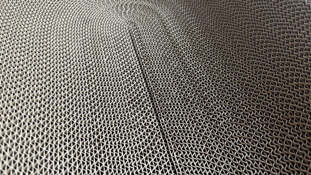 表面の見た目はこんな感じ。ダンボールがぎっしりと敷き詰められていて、バリバリと爪とぎのしがいがありそうな感じですね。