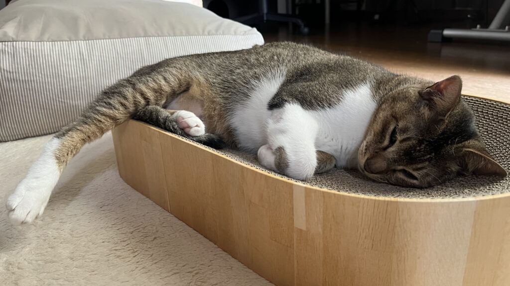 主な使い道は爪とぎで、天気のいい日に日向ぼっこをするくらい。